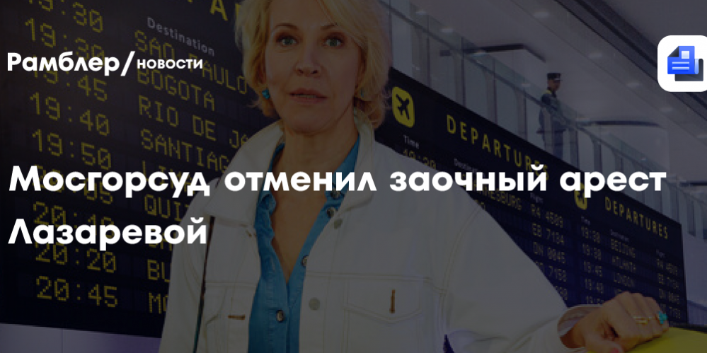 Мосгорсуд отменил постановление о заочном аресте телеведущей Татьяны Лазаревой по делу об уклонении от исполнения обязанностей иноагента. Об этом РИА Новости заявил ее адвокат Леонид Соловьев.