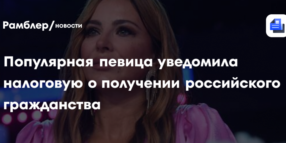 Певица Ани Лорак (настоящее имя — Каролина Куек) уведомила налоговую о том, что получила российское гражданство. Это следует из юридических документов, с которыми ознакомилось РИА Новости.