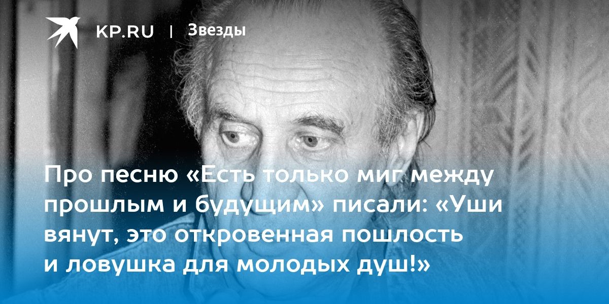 А еще Дербенев с Зацепиным работали на «Двенадцати стульях», «Не может быть!», «Иван Васильевич меняет профессию», «31 июня», «Женщине, которая поет», «Земле Санникова»… Песня «Есть только миг между прошлым и будущим» стала темой отдельной большой статьи в газете «Правда» (по другим данным, это был «Труд»): там приводились письма читателей, возмущенных столь безыдейным текстом. «Поверите ли — уши вянут, когда слышишь «Есть только миг, за него и держись» и тому подобную белиберду. Зачем только такие песни размножают? Чему они могут научить?» Содержание песни называлось «мещански-эгоцентрическим», «откровенной пошлостью», «ловушкой для молодых душ». Говорят, что весь этот бред (письма трудящихся, судя по всему, сочинили в редакции) был приурочен к отъезду Зацепина во Францию: «изменников» полагалось травить. Чем еще объяснить, что волна народного гнева обрушилась на песню из сверхпопулярного фильма через десять лет после его выхода в прокат?