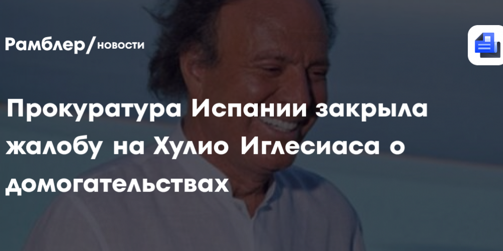 Прокуратура Испании прекратила рассмотрение жалобы в отношении испанского певца Хулио Иглесиаса о возможных домогательствах и сексуальном насилии, придя к выводу об отсутствии у страны судебной юрисдикции для расследования указанных фактов. Об этом сообщает телерадиокомпания RTVE.