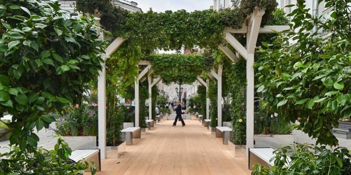 Самым популярным местом стала площадка на Тверском бульваре, где расположились сразу четыре уникальных сада. В Новопушкинском сквере расположился роскошный сад «Геометрия природы» с разными уровнями, ландшафт формировали растения и кустарники разной высоты и форм.