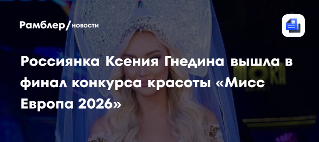 Россиянка Ксения Гнедина вышла в финал конкурса красоты «Мисс Европа 2026»