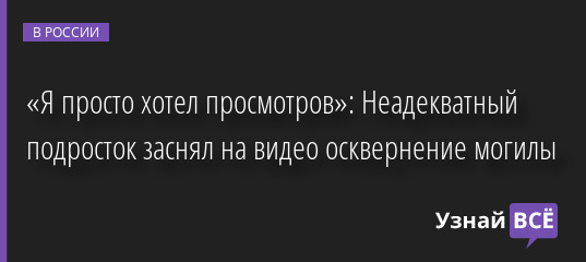 «Я просто хотел просмотров»: Неадекватный подросток заснял на видео осквернение могилы 28.07.2022 | Новости в России