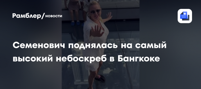Певица Анна Семенович рассказала в Telegram-канале, что преодолела один из своих самых сильных страхов. © Telegram-канал Анна Семенович Семенович призналась, что боялась высоты. К примеру, она не могла подойти к краю балкона. Артистка решила бороться со своим страхом и посетила самый высокий небоскреб в Бангкоке – Маханакхон. Она поднялась на 78 этаж и встала на стеклянный пол. Певица станцевала «танец маленьких лебедей» на высоте…