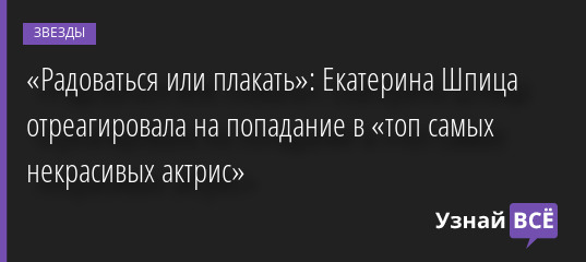 «Радоваться или плакать»: Екатерина Шпица отреагировала на попадание в «топ самых некрасивых актрис» 28.09.2022 | Звезды, шоу-бизнес